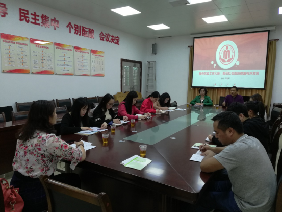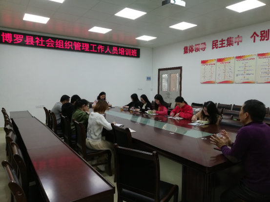 为加强社会组织管理人员队伍建设,使新入职的2018年民政专员尽快熟悉社会组织管理业务流程,掌握相关专业知识,12月21日下午,县民政局社会组织管理股在社会组织党群服务中心会议室举办了一期社会组织管理工作人员培训班。本次培训班由社会组织管理股股长,社会组织发展促进会会长李兰英主讲,参加培训人员由行政审批股、社会组织管理股的民政专员和部分协会成员组成,共15人。
