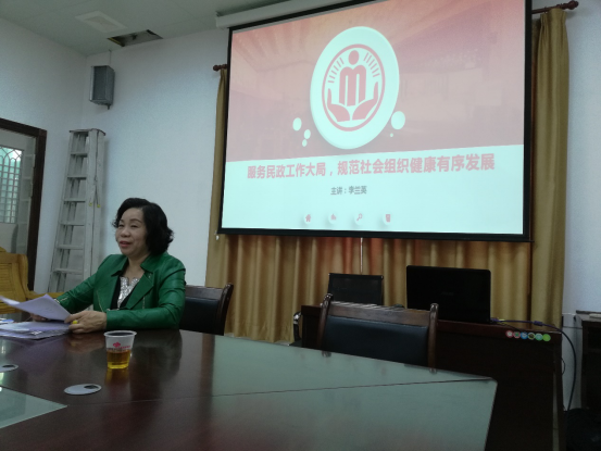 培训会在大家的自我介绍中拉开序幕。首先,李兰英同志向大家表明,目前社会组织是我国社会主义现代化建设的重要力量,国家将越来越重视社会组织的发展。俗话说:树人先树德、修身先修心,李兰英同志用“六个心”阐述了社会组织管理人员应具备的基本素质和要求。紧接着,李股长对社会组织及其管理进行了剖析,向大家详细解读了《社会团体登记管理条例》、《民办非企业单位登记管理暂行条例》和《志愿服务条例》。培训班上,李兰英同志还结合自己多年来的工作经验和专业知识以及人生中的一些感悟,在课堂上都毫无保留地传授给学员们,孜孜不倦。其生动、幽默、风趣的授课方式,赢得全体学员的一致认可与敬佩!