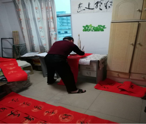 活动前期邀请了八音盒书法家爱好者陈老师为福田社区老人义写春联。墨香四溢,处处洋溢着春的温暖、新年的祥和,书法家挥毫泼墨,笔走龙蛇,将心底的美好祝愿化做一副副寓意吉祥的春联,给社区老人送上最真挚的祝福。