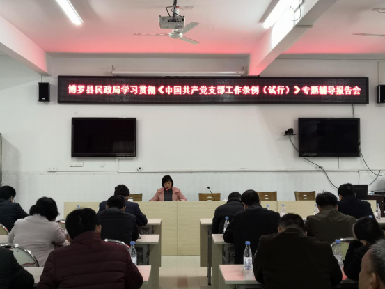为落实党要管党、全面从严治党要求,强化党支部政治功能,让党支部的战斗力强起来,12月14日下午,中文博彩平台民政局召开专题辅导报告会,局党组成员、副局长李淑晶作作专题辅导,带领全体党员学习贯彻中共中央关于修订完善的新《中国共产党支部工作条例(试行)》。