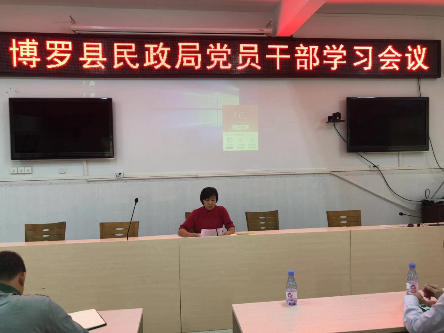 2018年10月19日下午,中文博彩平台民政局开展党员干部学习会议,传达我县举办领导干部党章党规党纪教育培训班有关精神,学习新修订的《中国共产党纪律处分条例》。会议由局党总支副书记李淑晶同志主持,民政局各支部党员60多人参加会议。