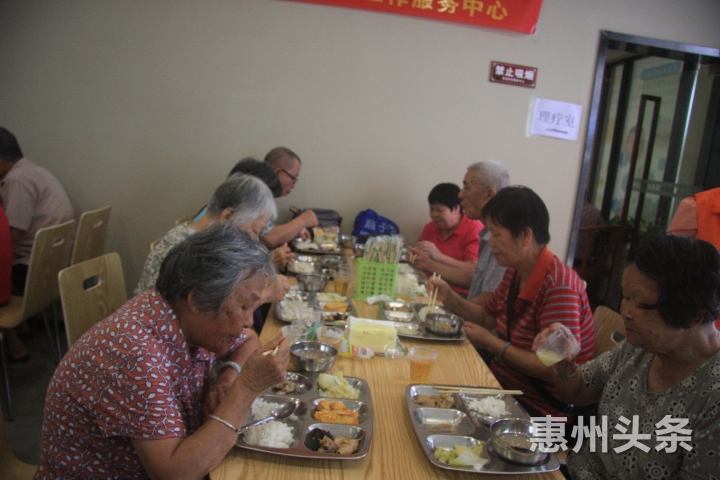 “今日中午还煮饭么?”“有长者饭堂,唔煮啦!吃完饭,还可以做下理疗,叹下空调。”