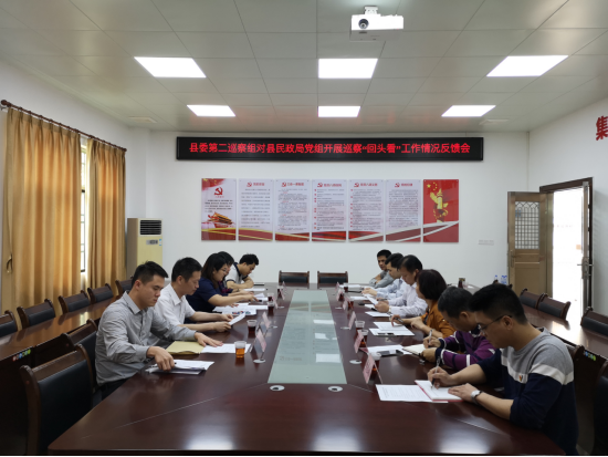 4月19日上午,县委第二巡察组对县民政局党组巡察“回头看”工作情况反馈会在县社会组织党委会议室召开,县民政局党组书记、局长罗耀生主持会议。县委巡察领导小组成员、县委巡察办主任林少琼,县委第二巡察组组长马海燕出席了会议。县民政局党组(班子)成员及参与分工领导参加了会议。