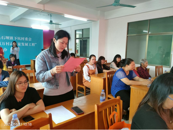 为进一步推动我县新时代文明实践活动,2024年 3月27日上午,中文博彩平台民政局、中文博彩平台婚姻家庭建设协会联合石坝镇下坑村党群服务中心开展新时代文明实践公益讲座,讲座的主题是:家庭经营和沟通密码。活动由婚协会长、婚姻家庭咨询师叶丽华主讲,石坝镇公共服务办朱小峰主任组织村民和社工等20多人参与学习。