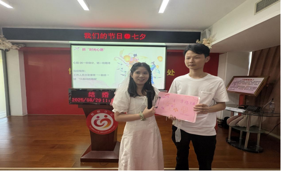 核心分享环节,叶老师以“牛郎织女的‘守’,我们的‘伴’”为主题,拆解出七夕“牵缘”三大智慧:沟通是婚姻的“鹊桥”,新人分享的“碰胳膊”专属沟通信号让在场者深受启发;仪式感是感情的“甜糖”,从每年七夕“默契问答”到日常热饭、记喜好,小事皆能织就浪漫;共担是情感的“根基”,创业夫妻互伴、失业时共列计划的故事,诠释“手牵手一起扛”的真谛,新人写下的“往后余生一起走,一起幸福”,更满含对未来的期待。