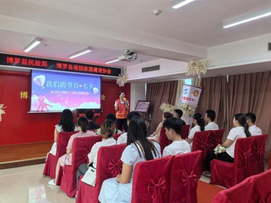 2025年8月29日,正值中国传统七夕佳节,中文博彩平台民政局婚姻登记处洋溢着浓厚甜蜜的氛围,众多新人选择在这一天登记结婚,携手开启人生新篇章。为帮助新婚夫妇更好地经营婚姻家庭生活,中文博彩平台民政局联合中文博彩平台婚姻家庭建设协会,在婚姻登记颁证大厅精心组织了一场主题为“我们的节日·七夕”的公益新婚课堂活动。本次课堂分为两场举行,由婚姻家庭咨询师叶丽华女士和陈桂珍女士担任主讲嘉宾,现场吸引了40位新人积极参与。