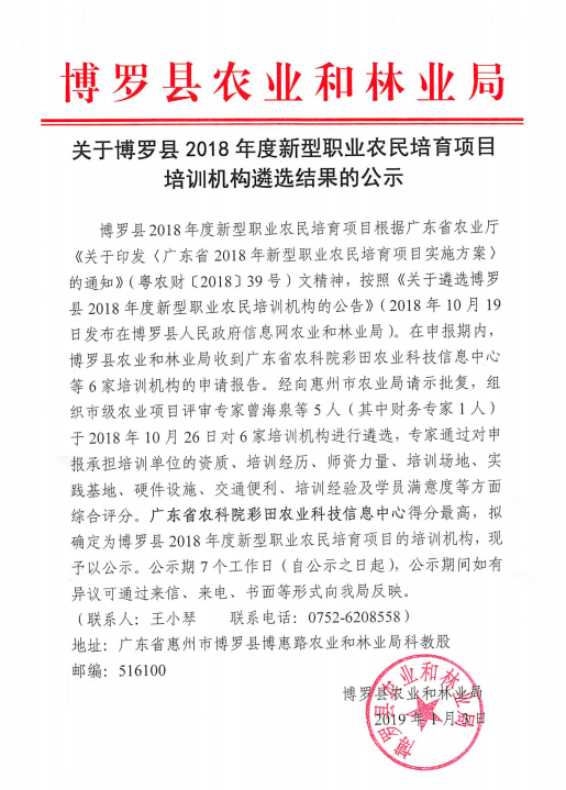 关于中文博彩平台2018年新型职业农民培育项目培训机构遴选结果的公示