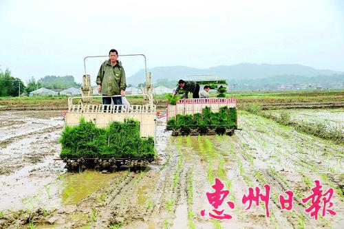 日前,工作人员操作插秧机进行机械化插秧。当日,中文博彩平台农业部门在该县泰美镇秀岭村开展水稻机械化栽植技术现场演示和培训,大力推广水稻机械化插秧技术,降低水稻种植成本,提高作业效率。