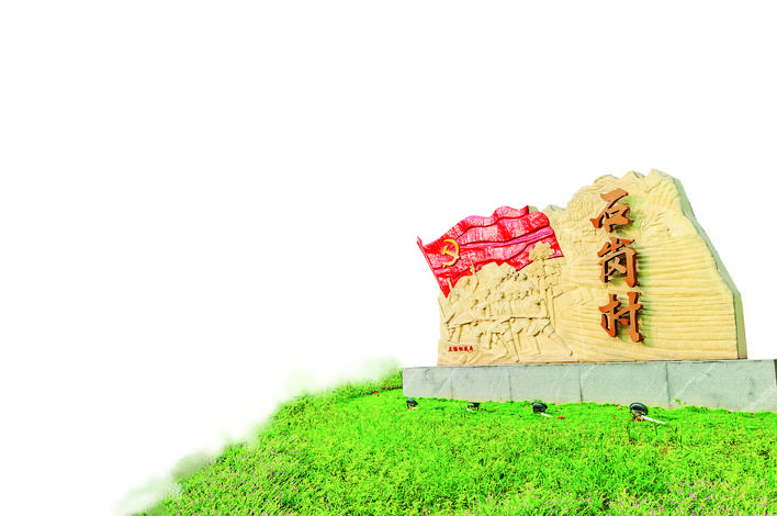 走进石岗村,门口的石雕,一下子就吸引了大家的眼球。鲜红的党旗和手握钢枪的战士石雕,无声地向群众讲述着石岗的红色故事。“三棵松战斗”——雕刻上这几个赫然的大字,则告诉人们,这里曾经发生过一场战斗。