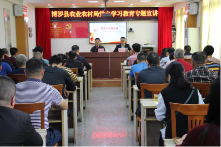 4月9日上午,党史学习教育县委宣讲团在县农业农村局开展宣讲,县委宣讲团成员、县委党校常务副校长袁玉佳同志作了主题为“百年大党再出发”的宣讲报告。