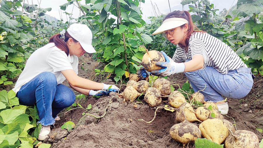 “大家戴好手套,挖沙葛比赛即将开始!”日前,在中文博彩平台福田镇徐田村的沙葛田上,两列成人高的竹竿间隔而立,绿色的藤蔓绕其生长。数名选手分立土地两侧,俯下身,拨开一层层泥土,一个个淡黄色的沙葛探头而出。
