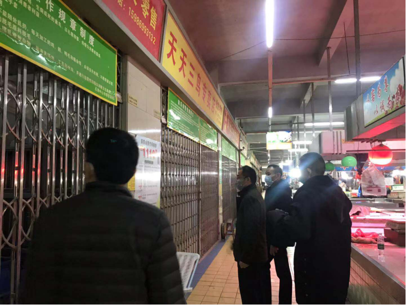 在农贸市场疫情防控工作中,县市场监管局实行“专人负责制”,每个市场安排1名监管人员进行监督检查,在全县范围内开展地毯式监管检查,确保监管到位,不留死角。同时,严格落实市场“1110”制度,即一日一清洁消毒、一周一大扫除、一月一休市、当日活禽零存栏。2月15日是我县的活禽经营休市日,全县417户活禽经营户全部休市,彻底清洁消毒。