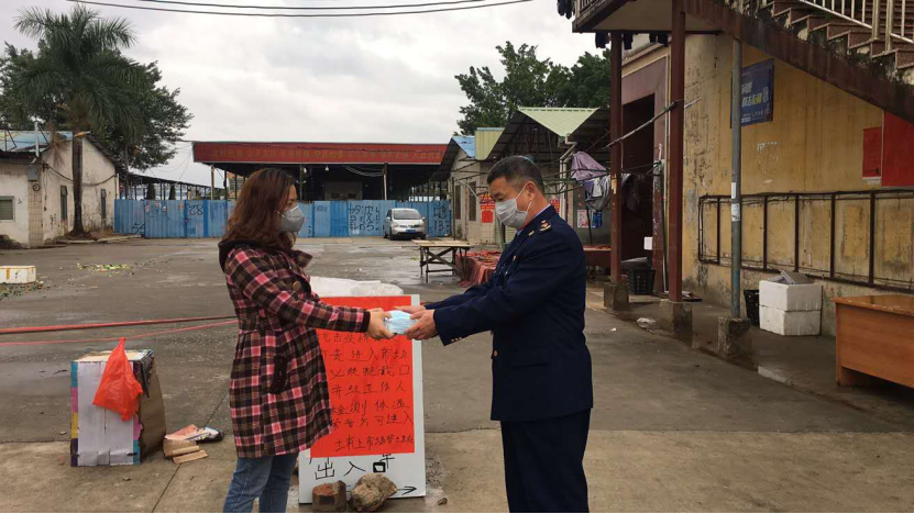 为全面落实县防控办关于市场经营者、个体工商户疫情防控“十个一律”的通告(第6号),县市场监管局加大关键物资调配力度,向全县51个农贸市场提供2700个口罩,帮助市场落实“未经检测人员和未佩戴口罩人员一律不得入内”的规定。