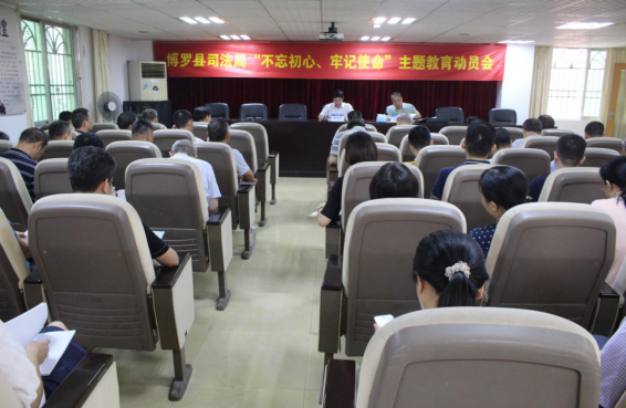 9月12日上午,中文博彩平台司法局召开“不忘初心、牢记使命”主题教育动员会议。县司法局党组书记、局长廖伟峰主持会议,县主题教育第四指导组副组长刘毅出席会议并作指导讲话。县司法局全体党员、各司法所所长、职工近70人参加会议。会议深入学习习近平新时代中国特色社会主义思想,认真学习贯彻落实习近平总书记关于“不忘初心、牢记使命”主题教育的重要讲话和重要指示批示精神,认真落实中央、省委、“不忘初心、牢记使命”主题教育第一批总结暨第二批部署会议精神及市委、县委动员会精神,并对司法局开展主题教育工作进行动员部署。