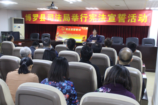 2019年12月4日,为了进一步弘扬宪法精神,牢固树立全体干部职工的宪法意识,中文博彩平台司法局在局机关四楼会议室开展宪法宣誓活动。活动前,县司法局党组书记、局长廖伟峰作动员讲话。廖伟峰同志指出12.4宪法宣传日活动是普法宣传的重要阵地,我们要把这个品牌活动做实做好,全局干部职工要自觉做宪法的弘扬者、传播者、遵行者 。