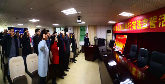 在动员讲话结束后,在廖伟峰局长的带领下,完成了宪法宣誓活动。