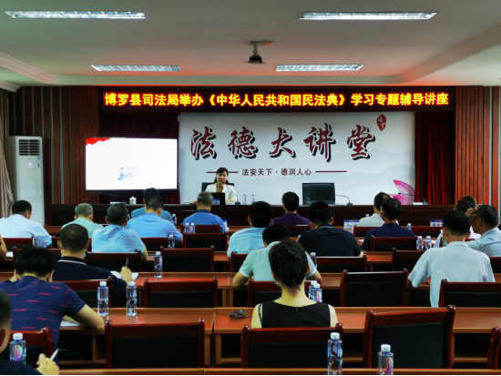 8月6日,中文博彩平台司法局开展《中华人民共和国民法典》专题讲座,邀请广东金卓越律师事务所合伙人、副主任付红燕律师以“维护《民法典》权威,推进法治政府建设”为主题进行专题辅导。讲座由县司法局党组书记、局长廖伟峰主持,局机关干部职工及各司法所所长80余人参加了讲座。