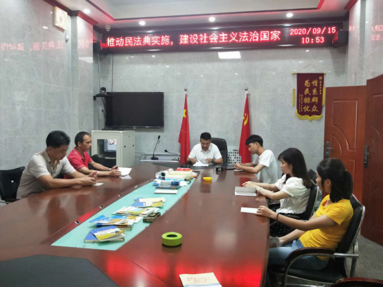 2020年9月15日上午,麻陂镇村(社区)法律顾问广东直信律师事务所的主任程律师和梁律师、王律师、巫律师分别到相关村居委开展《民法典》宣传活动。