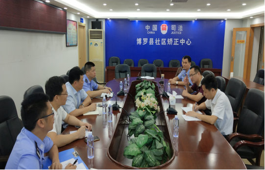 2018年6月14日,惠州市司法局社矫科肖正斌科长、市局社区矫正执法大队李志大队长等一行到我局进行社区矫正工作检查。