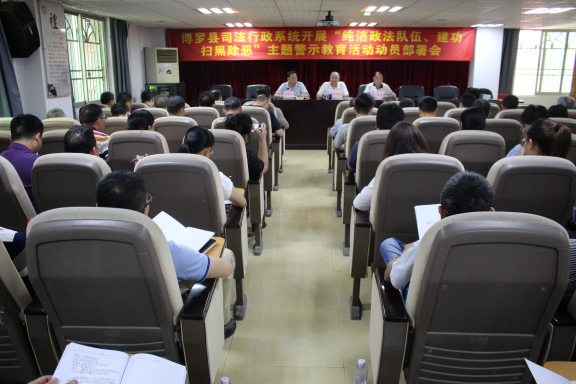 6月11日,我局召开“纯洁政法队伍、建功扫黑除恶”主题警示教育活动动员部署会。局机关、各司法所全体人员共80多人参加会议。局党组书记、局长陈锡坤主持会议。会上,局党组成员、政工科科长练爱平传达学习了上级“纯洁政法队伍、建功扫黑除恶”主题警示教育活动有关会议精神;局党组书记、局长陈锡坤从提高政治站位,充分认识开展主题警示教育活动的重要意义;明确工作要求,稳步推进主题警示教育活动各项工作;落实保障措施,确保主题警示教育活动取得实实在在的效果等三个方面,对我局“纯洁政法队伍、建功扫黑除恶”主题警示教育活动进行全面动员部署。县纪委派驻政法党委纪检组组长朱志华同志作了紧紧压实纪律红线,强化主体责任落实的辅导报告。朱志华组长分析了当前反腐形势,通过以案说法、以案释纪,引导全体干部职工:一要增强责任意识,牢牢绷紧纪律这根弦;二要严守党的政治纪律和政治规矩,切实转变工作作风;三要严守八项规定、“十六个不准”,守住底线;四要勇于担当进取,围绕中心,服务大局,为我县高质量建设“区域协调发展示范县”提供法律服务和保障。