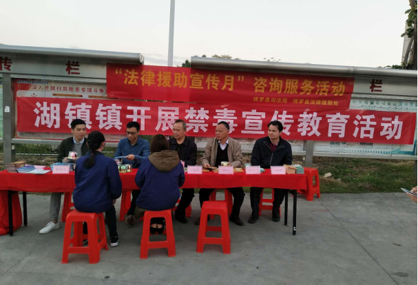 为了满足群众对法律法知识的需要,让群众更好地了解法律援助,受惠于法律援助,12月18日下午,县司法局副局长余日春率领法援处主任张志军及三名律师等一行5人,联合湖镇司法所、综治办、禁毒办到湖镇镇丰采贵金属有限公司开展“法律援助宣传月”咨询服务活动。