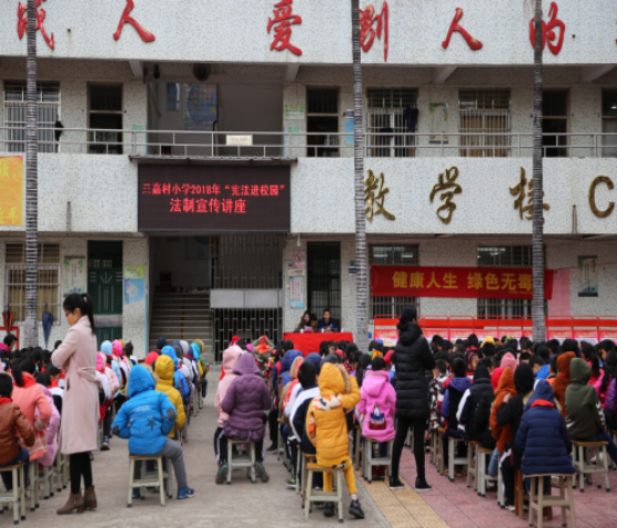 为深化宪法教育,大力弘扬宪法精神,使三嘉村小学全校师生深入了解宪法、尊崇宪法,弘扬宪法精神,增强法治观念。2018年12月12日下午,三嘉村小学举行了“宪法进校园”法制宣传讲座活动。活动由周运连校长主持;惠州市惠泰律师事务所刘小婵律师(三嘉村小学法律顾问)主讲;全校师生共1000多人聆听了本次讲座。