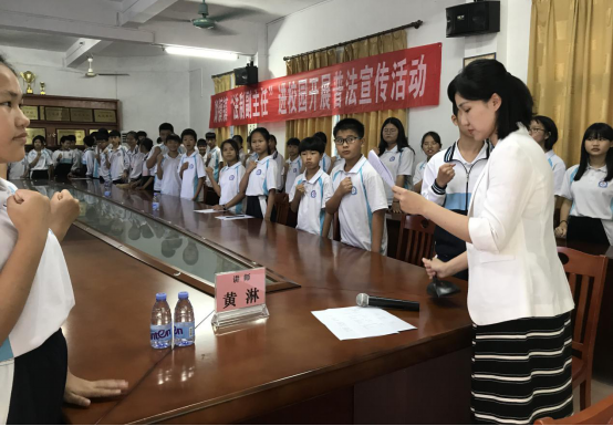 讲座中,黄淋律师分别从尊崇宪法、学习宪法、以案说法、诵读宪法“四大模块”对宪法进行生动讲解,并且通过法律知识问答、播放视频、宪法宣誓等环节与学生积极互动,激发他们的学法热情,播撒法治精神种子。课程通俗有趣,帮助在座250余名学生了解宪法的地位及重要意义,让学生了解宪法、在内心尊崇宪法、从早从小树立宪法法律至上的法治信仰。