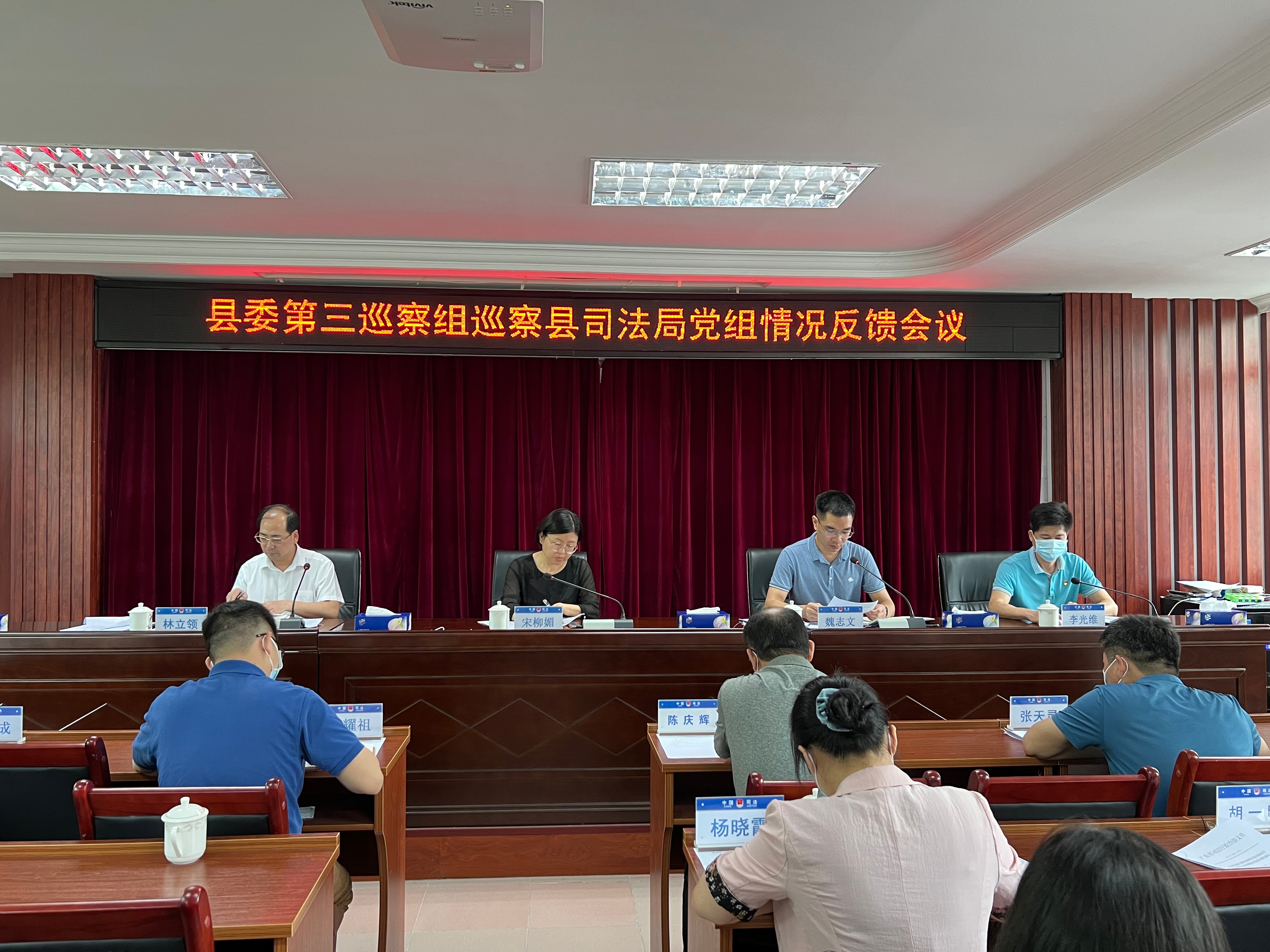根据县委巡察工作领导小组的统一部署,2022年4月26日上午,县委第三巡察组巡察县司法局党组情况反馈会议在县司法局四楼会议室召开。县纪委常委、县委巡察工作领导小组成员、县委巡察办主任宋柳媚,县委第三巡察组相关负责人魏志文、李光维,县纪委第三派驻纪检监察组副组长叶耀祖,以及县委第三巡察组其他成员,县司法局机关全体干部职工及各司法所负责人参加了会议。会议由县司法局党组书记、局长林立领主持。