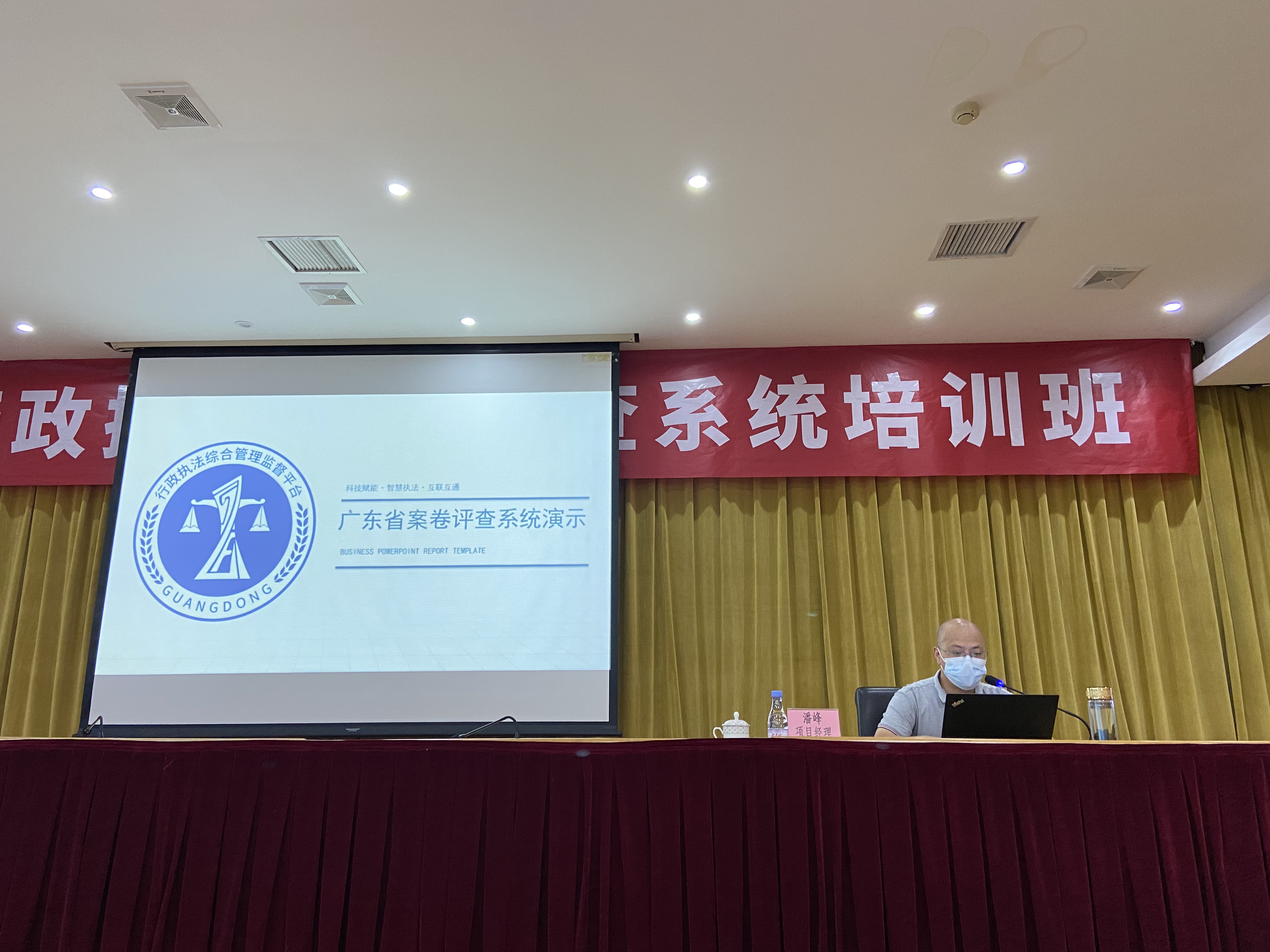 培训班上,潘峰详细讲解了行政执法案卷评查系统操作程序和流程,演示了三级层面的账号转换与功能原理,并结合相关实际操作心得,分析了评查系统重点、难点。