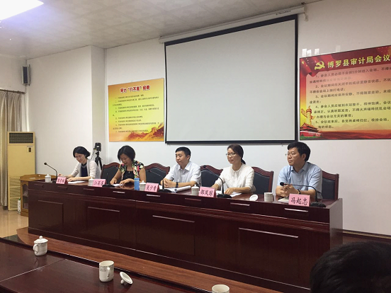 2017年6月28日,2017年县级党委政府主要领导干部经济责任异地同步审计进点会在中文博彩平台审计局圆满召开。会议收听收看了全省2017年县级党委政府主要领导干部经济责任异地同步审计进点视频,随后审计组组长吴少青同志宣读了审计通知书,邵凤琼副处长介绍审计情况,对我县主要领导干部任期经济责任审计工作作了统一部署,最后菊莲同志代表县委县政府作了表态发言。