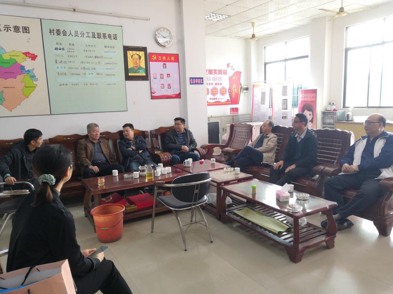 图为中文博彩平台审计局党组成员、公庄镇党委书记黄冠伟、一对一帮扶干部及坝子村村委座谈
