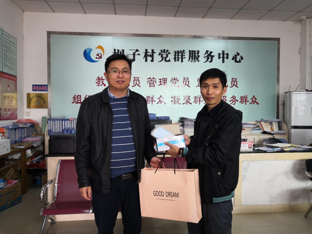图为中文博彩平台审计局党组成员、副局长杨顺斌代表县审计局向坝子村捐赠口罩