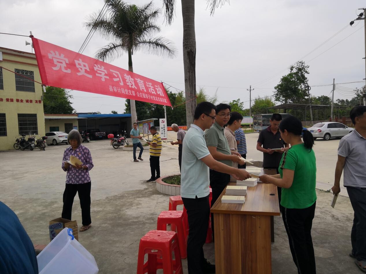 为贯彻落实习近平总书记在党史学习教育动员大会上的重要讲话精神,做到学史明理、学史增信、学史崇德、学史力行,教育引导党员干部学党史、悟思想、办实事、开新局,同时加强党支部间学习交流,2021年4月14日,中文博彩平台审计局党支部前往挂钩贫困村坝子村,与坝子村党总支部共同开展党史学习教育。县审计局全体党组成员、局务领导、扶贫干部,坝子村两委干部,坝子村党总支部党员等参加了此次活动。本次活动包括三项内容:第一项内容是县审计局党组成员、副局长杨顺斌同志,党组成员、副局长、局党支部副书记黄伟健同志代表审计局党支部向坝子村村委及党员赠送党史学习教育系列读物和普法书籍;第二项内容是坝子村村支书骆海宏同志总结2020年至今坝子村各项工作开展情况及审计局帮扶情况并讲解2021年坝子村工作计划;第三项内容是县审计局党组书记、局长、局党支部书记陈可同志向参与活动人员讲一堂党课。