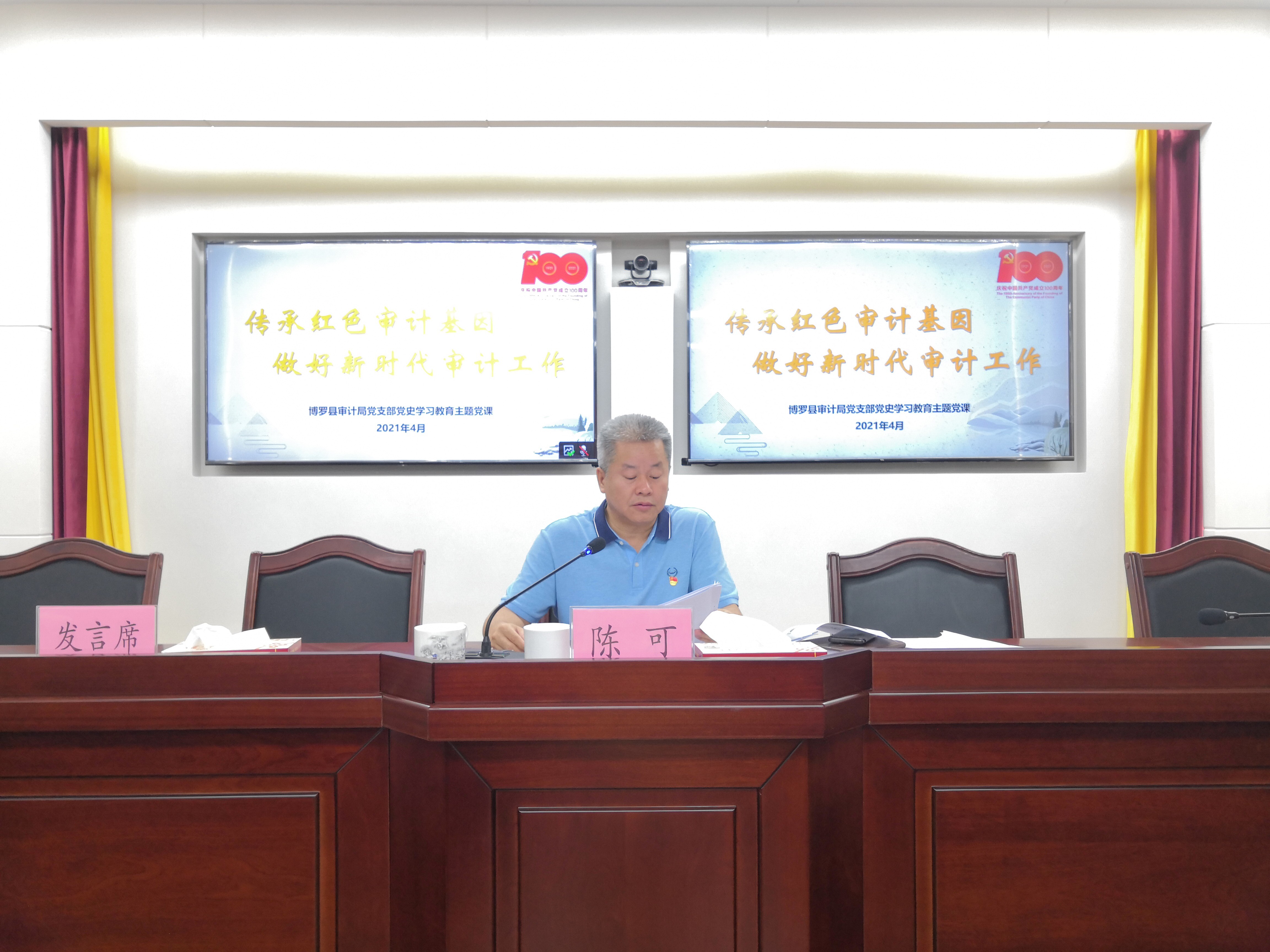 为深入开展党史学习教育,从党史中汲取智慧和力量,引导全体审计人员学党史、悟初心、办实事、履职责,4月30日上午,县审计局举办了党史学习教育专题党课报告会,局党组书记、局长、局党支部书记陈可作专题党课报告,县审计局全体审计人员参加报告会。