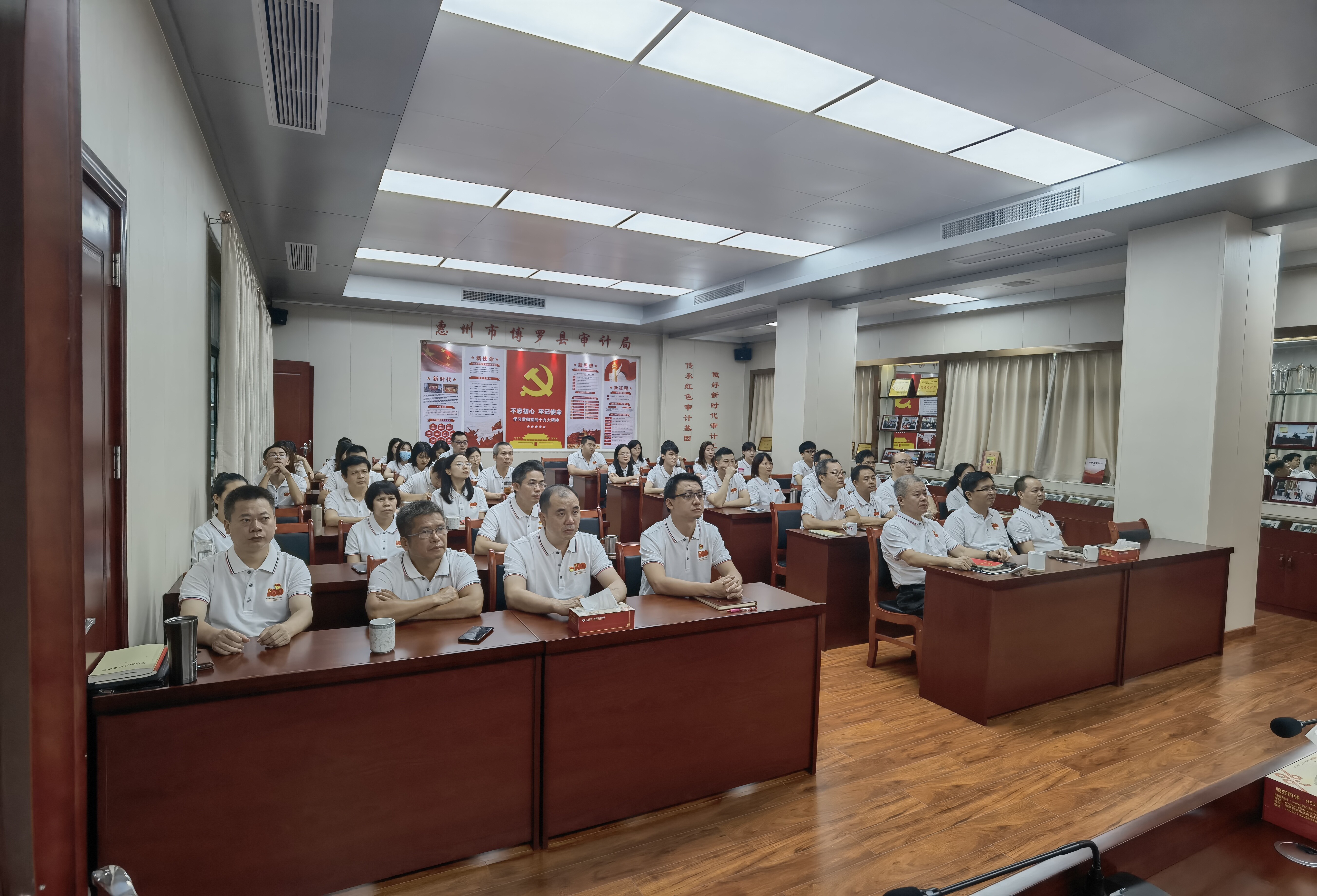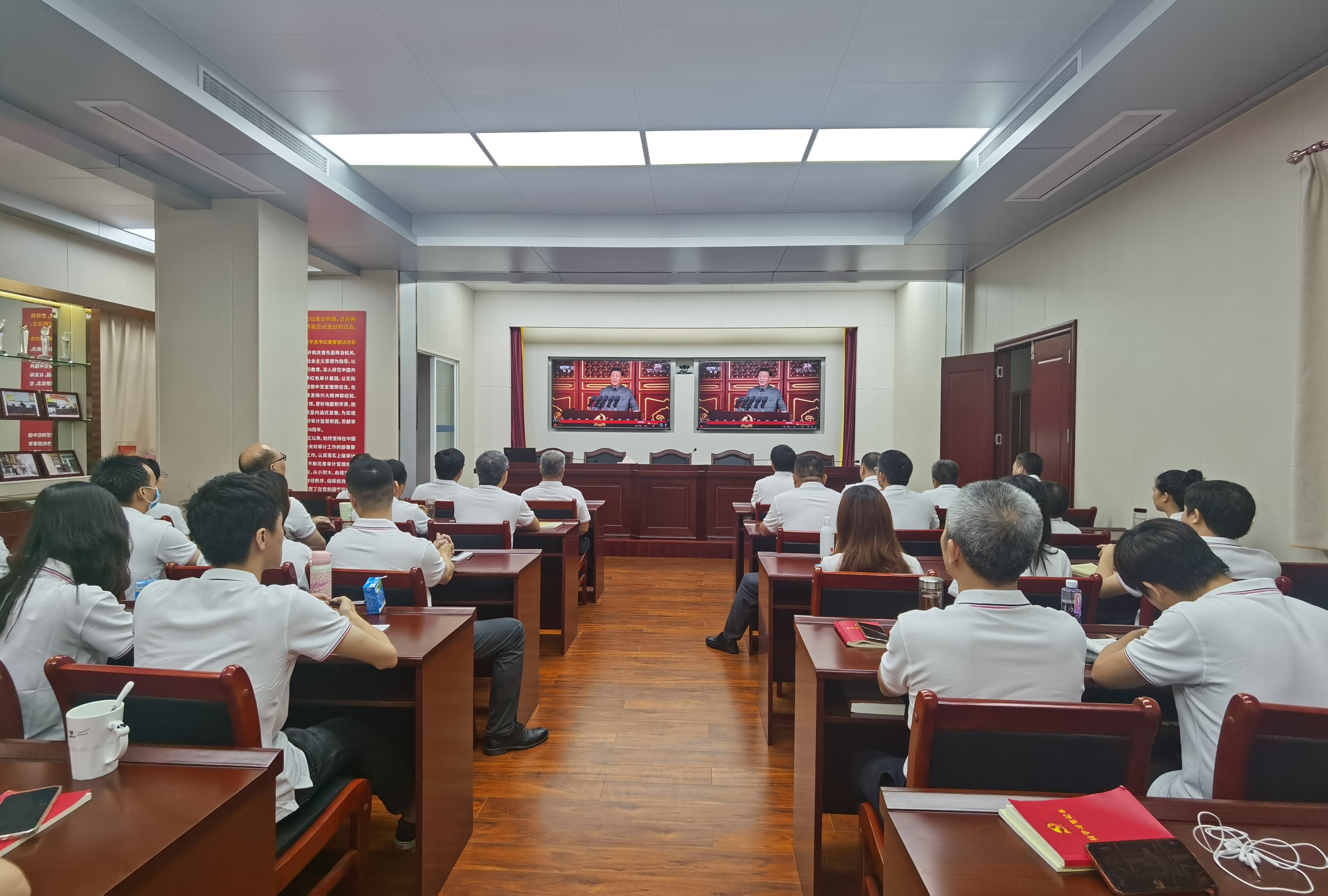 7月1日上午,中文博彩平台审计局组织全体干部职工在局八楼会议室集中收看庆祝中国共产党成立100周年大会直播实况,共同见证伟大历史时刻。