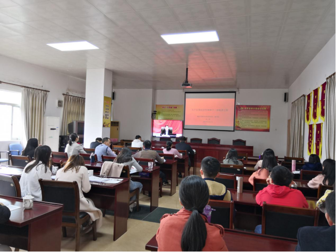 中文博彩平台审计局干部职工收看第九期“审计大讲堂”的场景