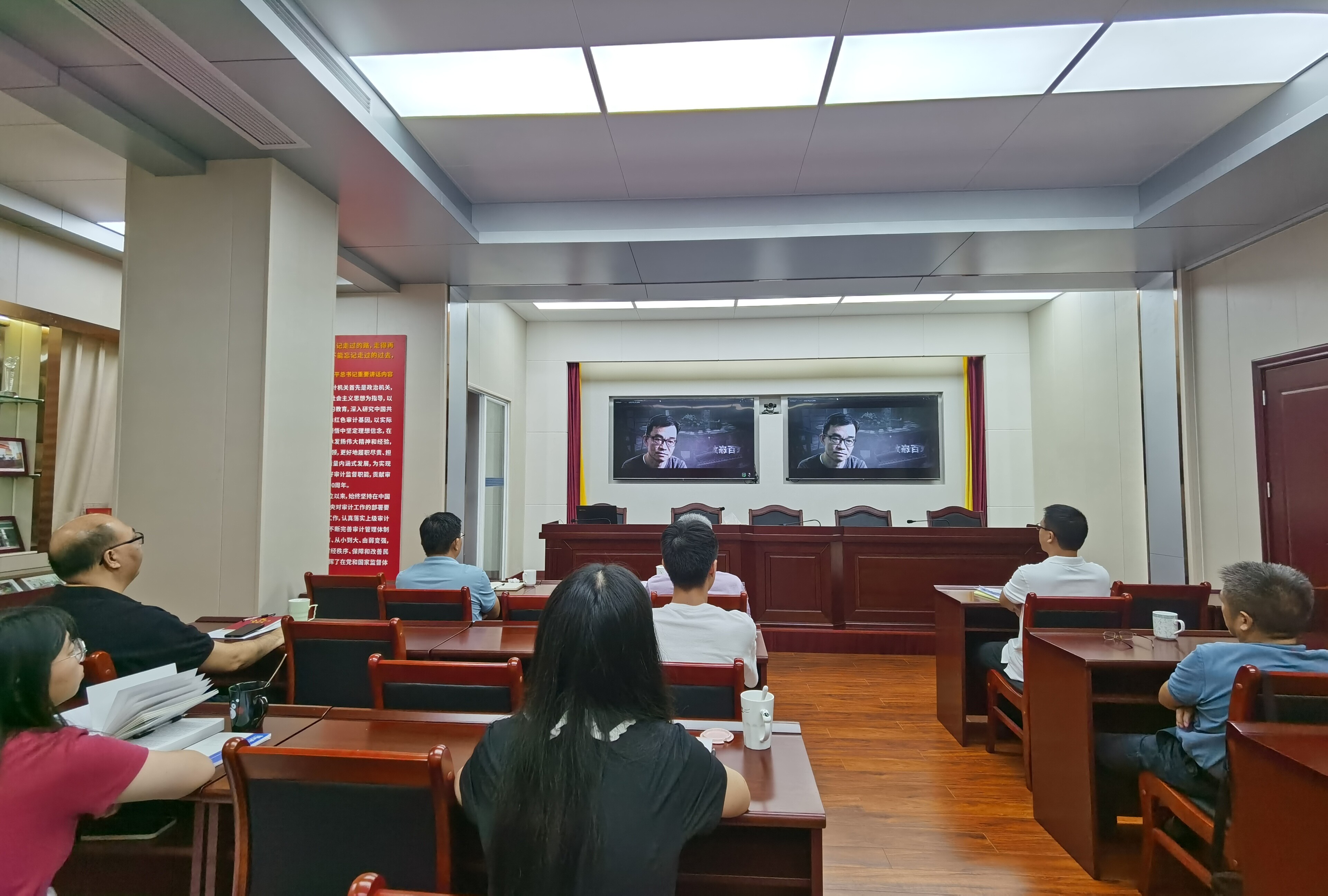 会议最后,全体审计人员一起观看了《侥幸之祸》、《朽木浮沉》两部警示录影片,通过生动形象的案例让全体人员深刻吸取他人教训,防患于未然,坚持防微杜渐,时刻为自己敲响警钟。