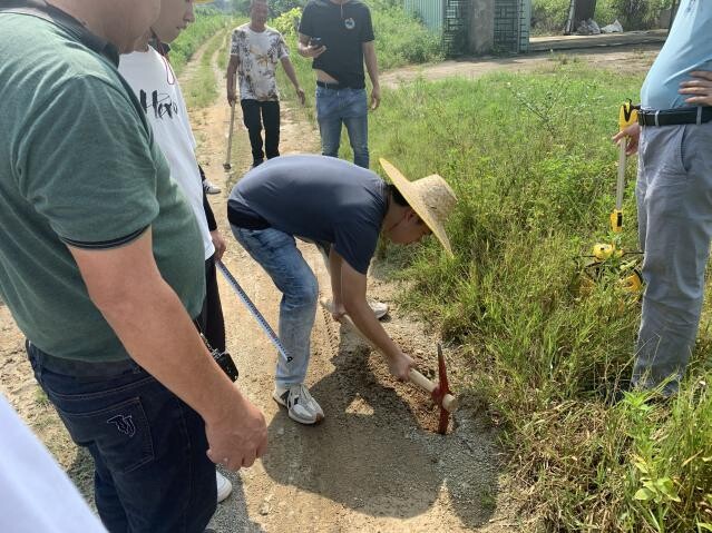 现场勘察之前,审计人员把图纸及变更签证认真查阅一遍,把发现的问题及存疑的地方记录下来,再去现场结合这些问题及存疑之处逐一排查落实。审计人员在现场勘察,最重要的是查看实际施工情况是否与设计相符,有无偷工减料、抵挡替代现象,对于无法肉眼观察也是最容易“偷吃”的隐蔽工程,如高标准农田项目中的机耕路、沟渠砼底板厚度等,审计人员通常采取局部开挖的方式“刨根问底”,力求还原最真实的施工情况。