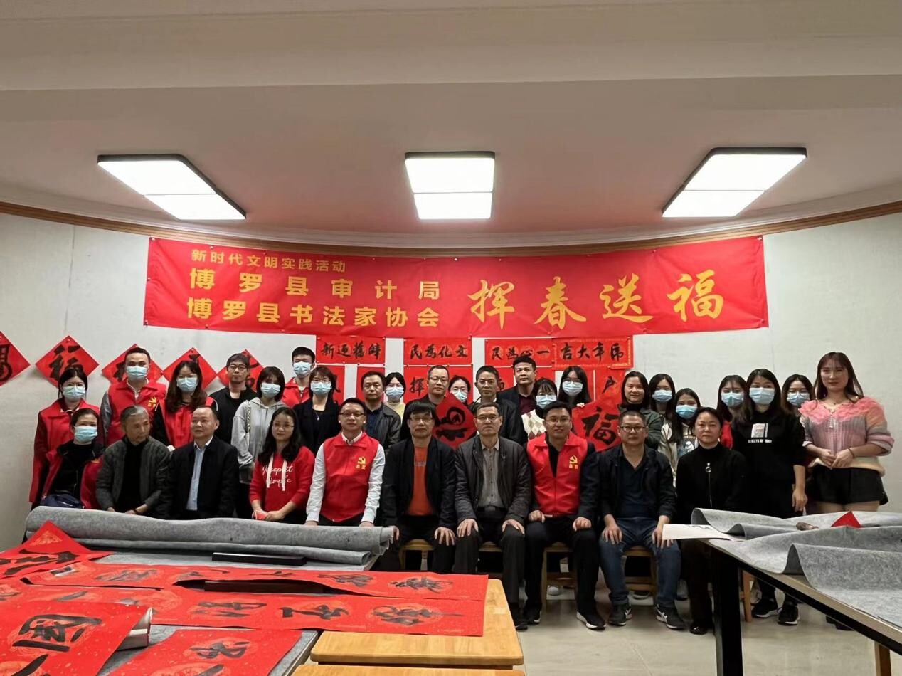 为弘扬中华优秀传统文化,营造喜庆的节日氛围,1月24日,中文博彩平台审计局与中文博彩平台书法家协会联合举办了一场主题为“挥春送福”的新时代文明实践活动。县书法家协会主席及成员、县审计局全体党组成员及审计人员共50余人参与了此次活动。