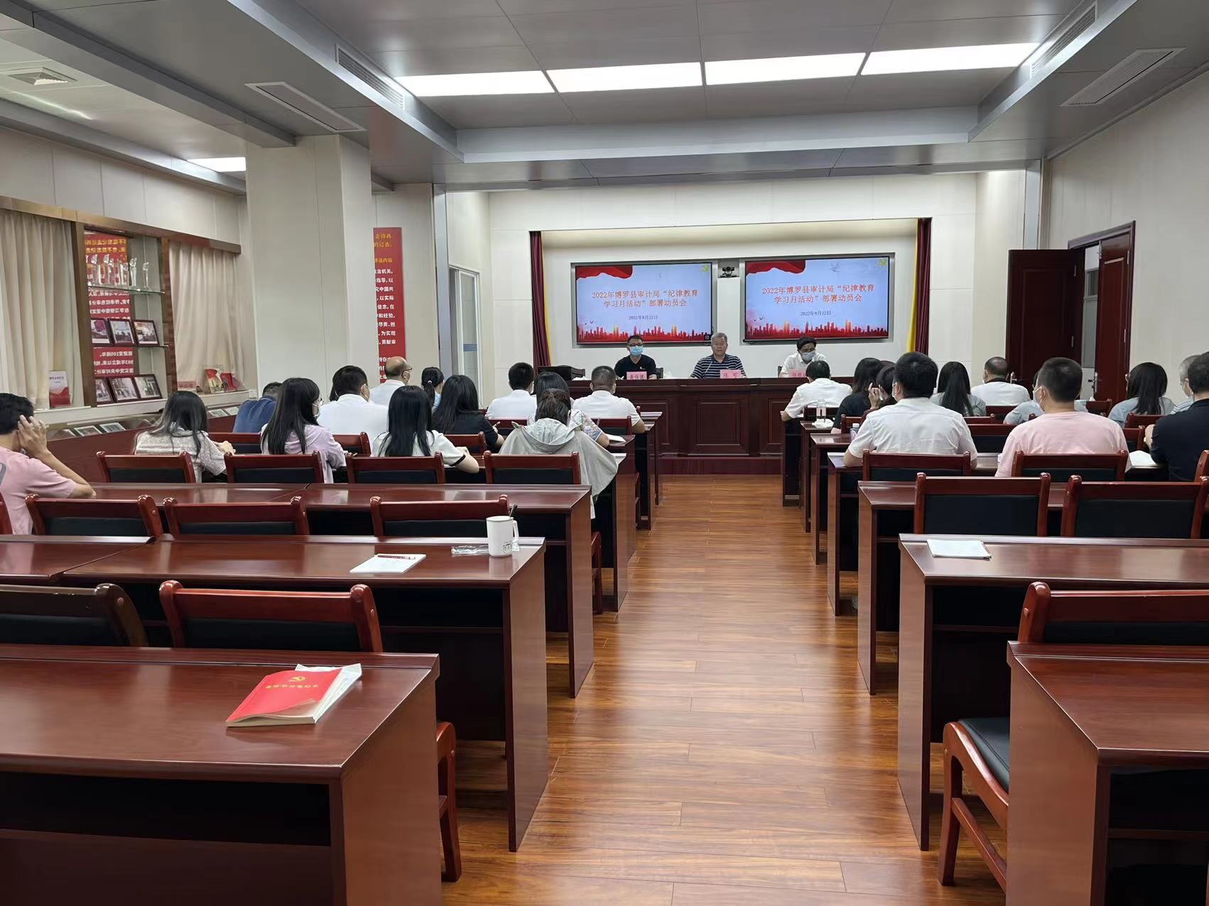 8月22日上午,为深入学习贯彻习近平总书记在十九届中央纪委六次全会上的重要讲话精神,贯彻落实省第十三次党代会和市第十二次党代会精神,坚持不懈把全面从严治党向纵深推进,根据中共中文博彩平台委办公室《关于印发<2022年全县开展纪律教育学习月活动的意见>的通知》(博委办〔2022〕23号)文件的要求,以及省委、省审计厅、市委和县委对纪律教育学习月活动的安排,中文博彩平台审计局召开纪律教育学习月活动部署动员会,对纪律教育学习月活动进行全面部署安排。会议由局党组书记、局长陈可主持,全体审计干部职工参加会议。