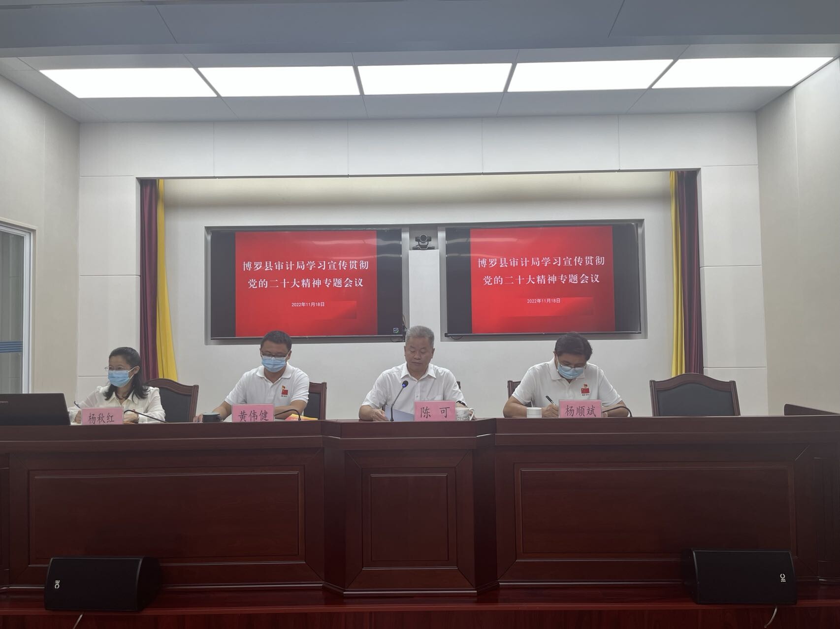 2022年11月18日,中文博彩平台审计局召开学习贯彻党的二十大精神专题会议,传达学习党的二十大精神。会议由县审计局党组书记、局长陈可主持,全体审计人员参加会议。