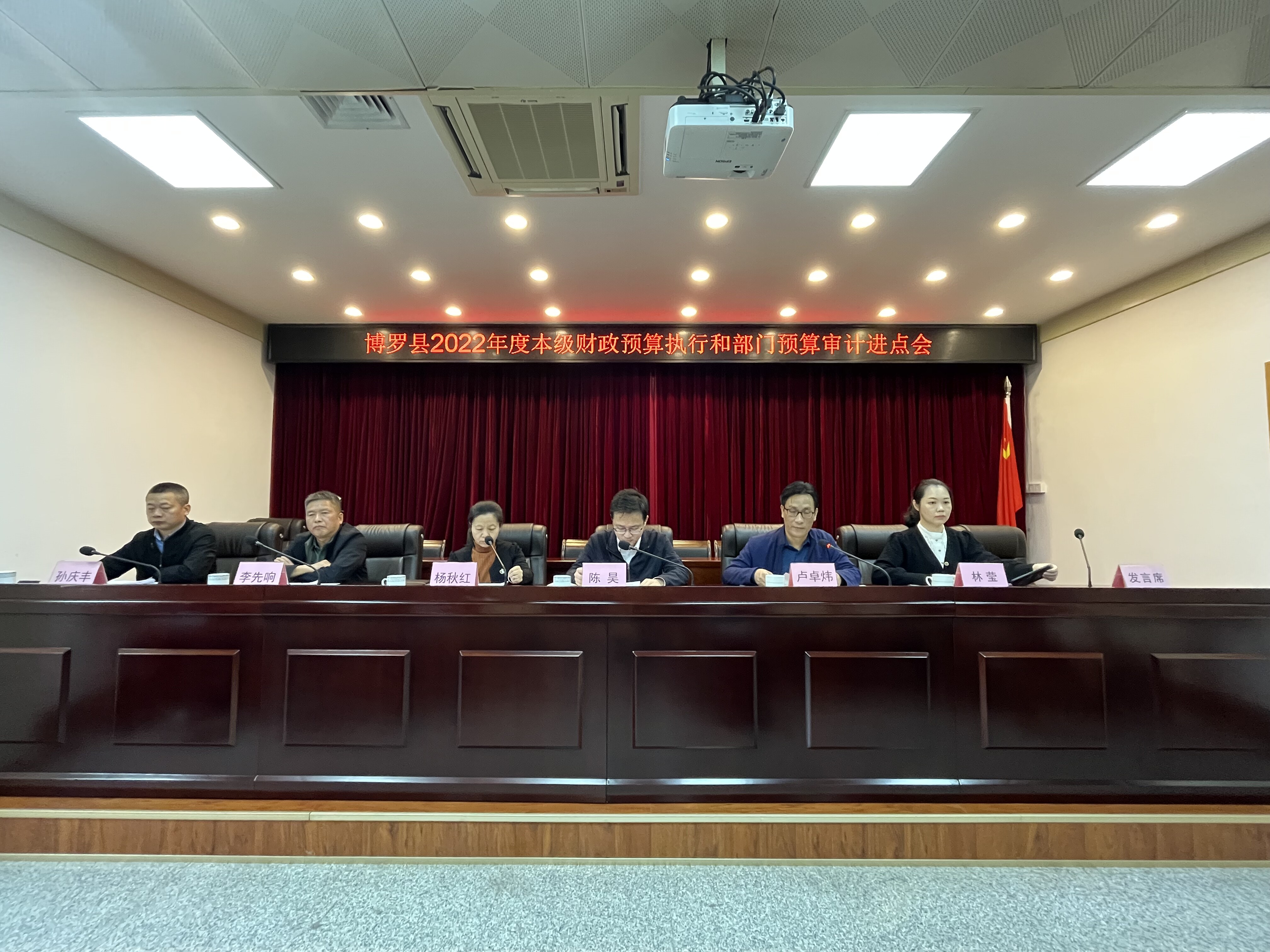会上,县审计局党组成员、总审计师李先响宣读县2022年度本级财政预算执行、决算草案和其他财政收支审计的通知书。审计组主审孙庆丰宣读县2022年度本级财政预算执行、决算草案和其他财政收支审计的审计内容。县财政局党组成员、总会计师林莹从财政收支及管理情况、地方政府专项债券管理使用情况、“三保”财政保障情况、财政预算绩效管理情况、2021年度财政审计发现问题整改情况以及重大项目基建投资领域资金管理使用情况等方面作了汇报。县市场监督管理局有关负责同志汇报了2022年部门预算执行情况并作了表态发言。