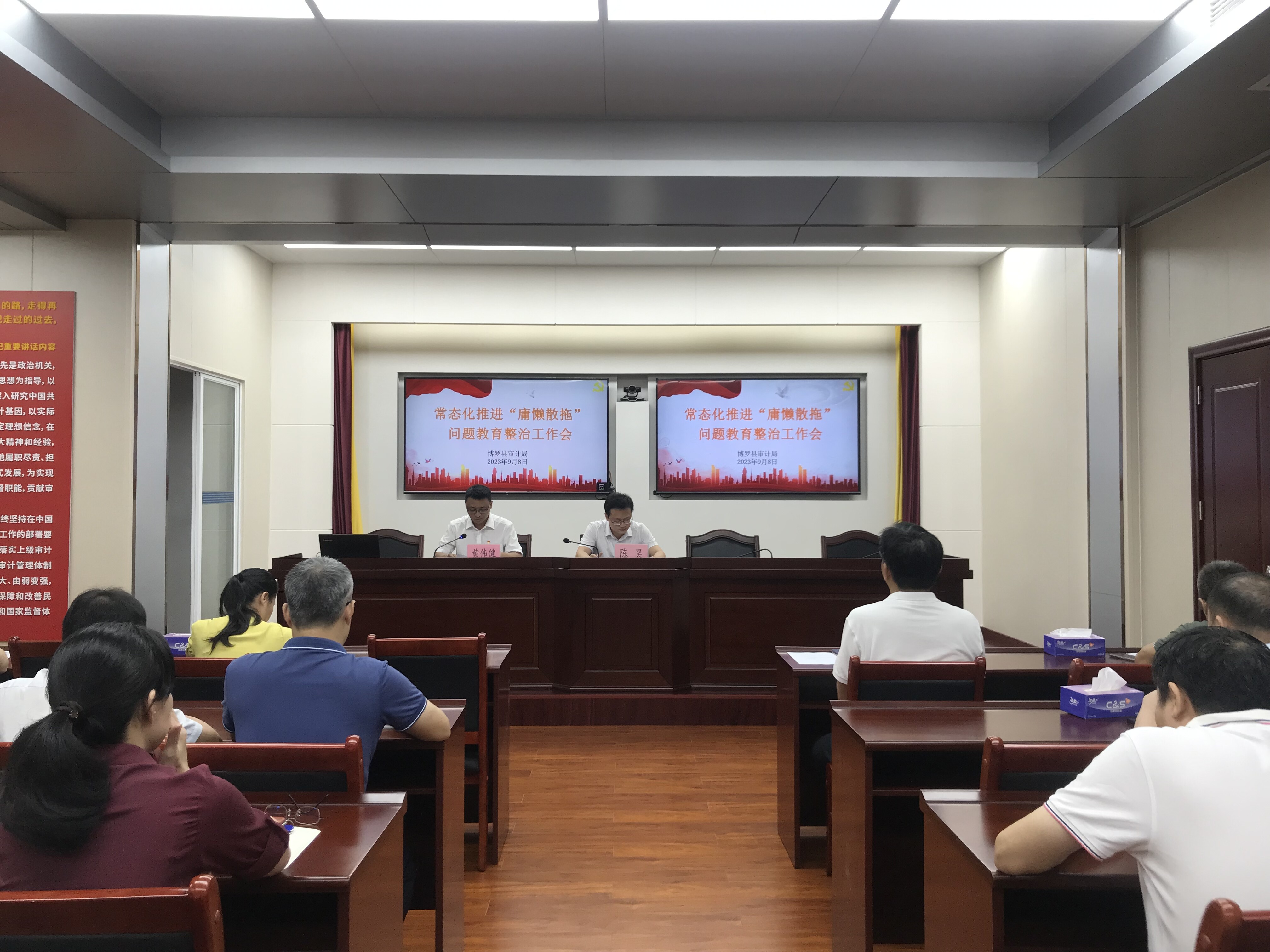 为贯彻落实习近平新时代中国特色社会主义思想和党的二十大精神,进一步巩固深化专项教育整治成果,持续提振干部队伍精气神,近日,中文博彩平台审计局召开常态化推进“庸懒散拖”问题专项教育整治会,局党组书记、局长陈昊为全体党员干部讲授专题党课。局党组成员、副局长黄伟健同志主持会议。