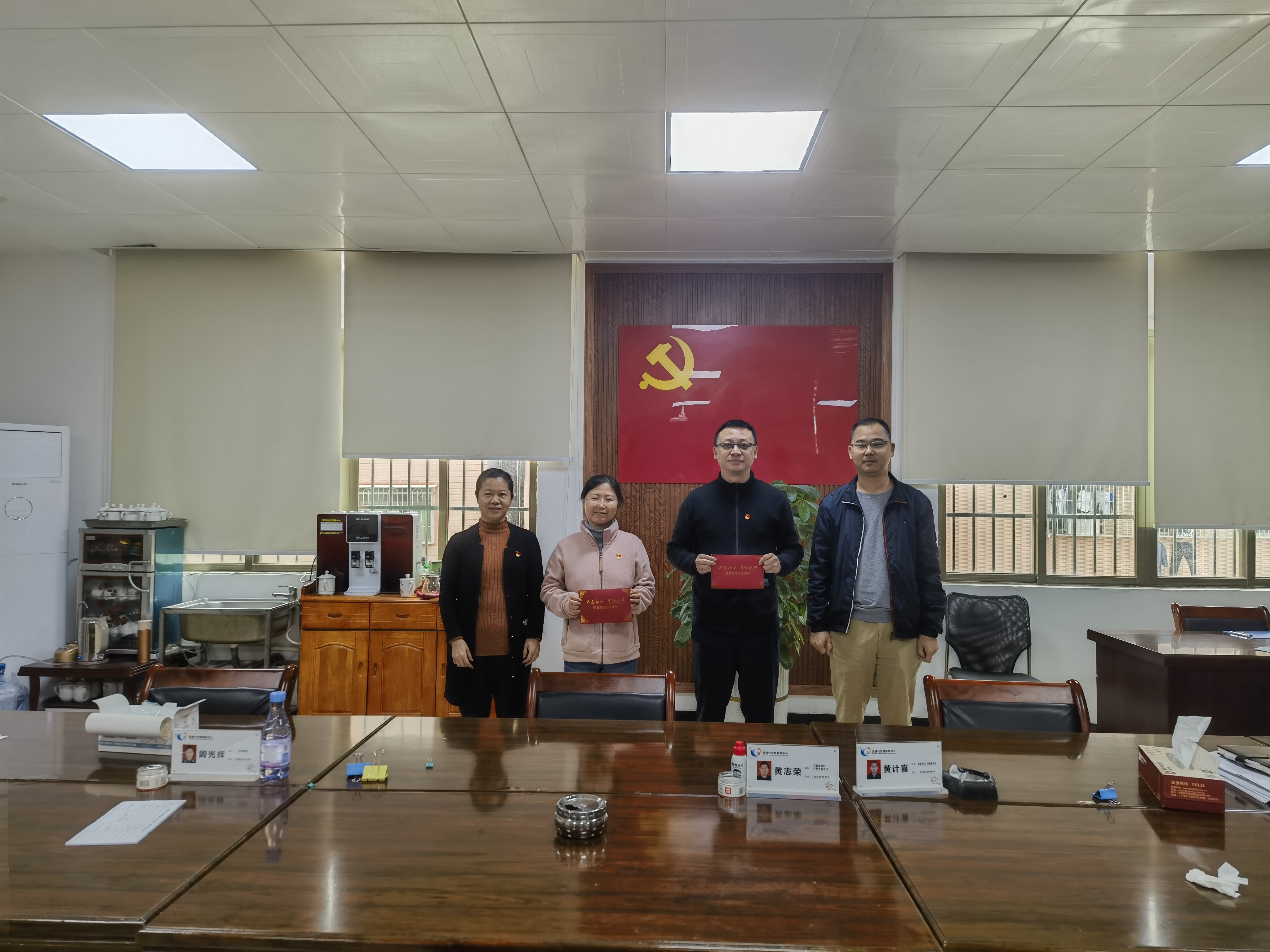 在宫庭村党群服务中心,县审计局党组成员、副局长杨秋红和宫庭村党委书记黄计喜向第一季度过“政治生日”的党员同志派发“政治生日”贺卡,鼓励他们持之以恒做新时代合格党员。