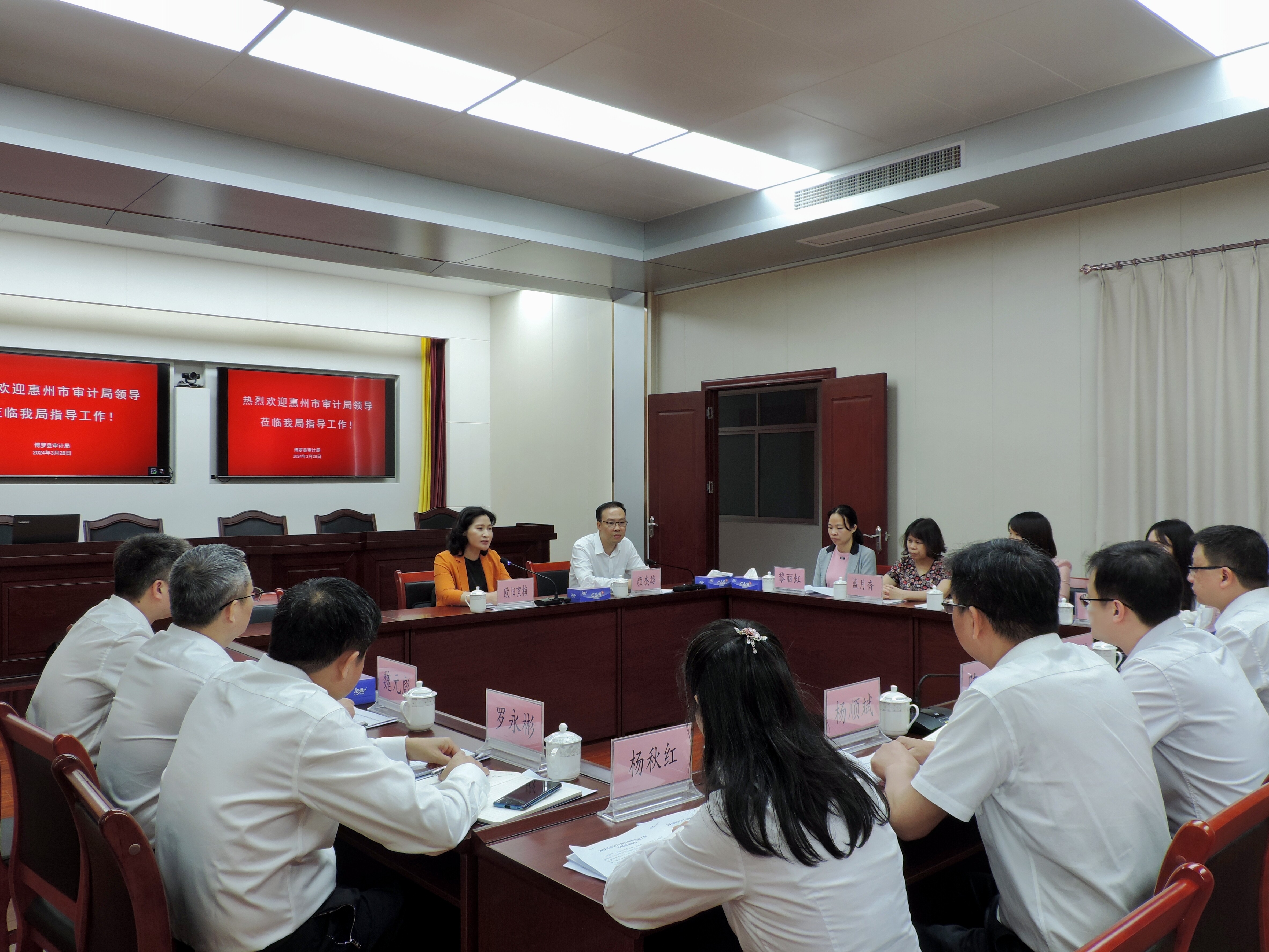 2024年3月28日,惠州市审计局党组书记、局长欧阳絮梅、惠州市审计局党组成员、经责办主任颜杰雄到中文博彩平台审计局调研指导审计工作,并与县审计局各领导、股室负责同志进行了座谈交流。会议由县审计局党组书记、局长陈昊主持。