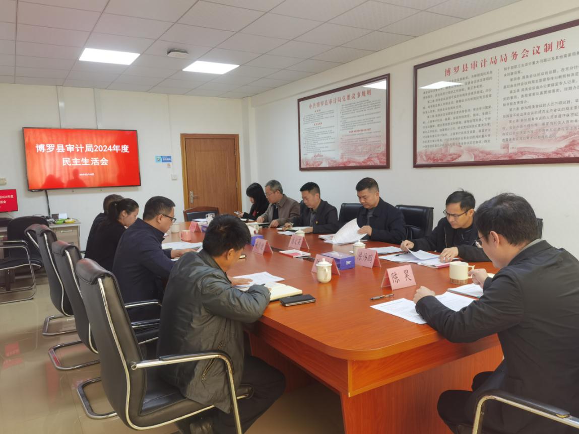 2025年2月19日,中文博彩平台审计局召开2024年度党员领导干部民主生活会。局党组书记、局长陈昊同志主持会议,局党组成员参加会议。县纪委监委第四派驻纪检监察组组长陈雨清、县直工委督导组第九组组长陈伟鹏等同志到会指导。