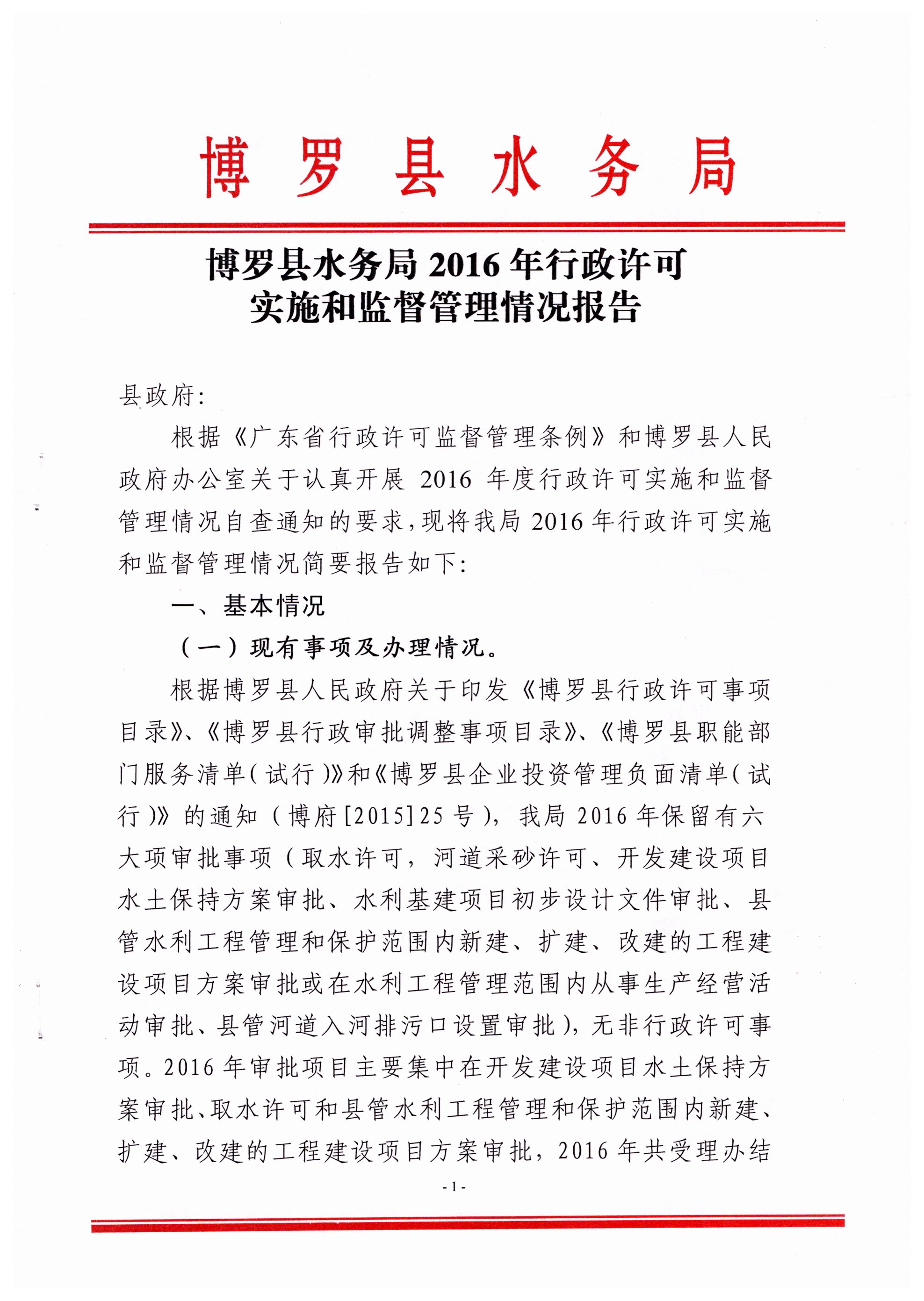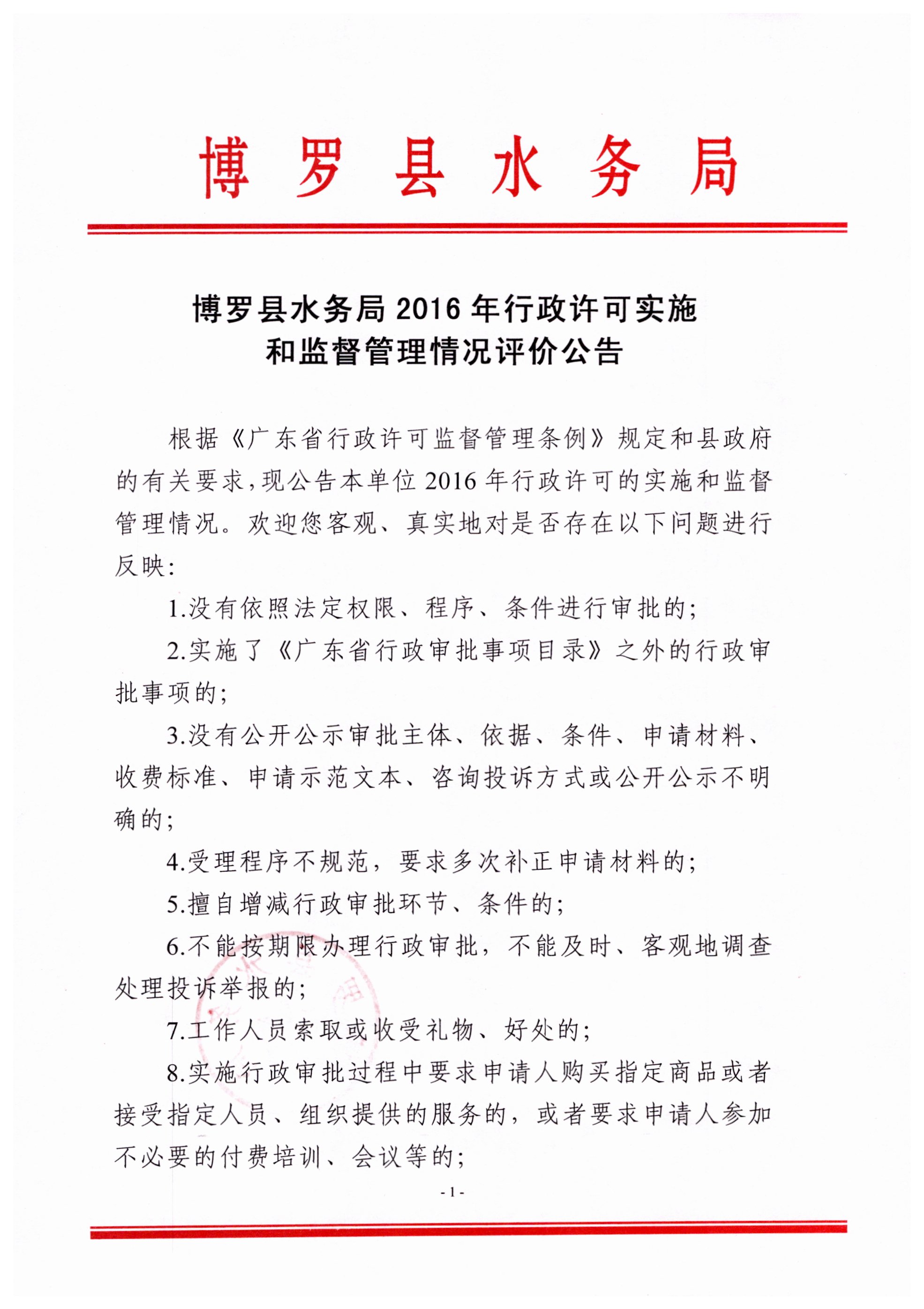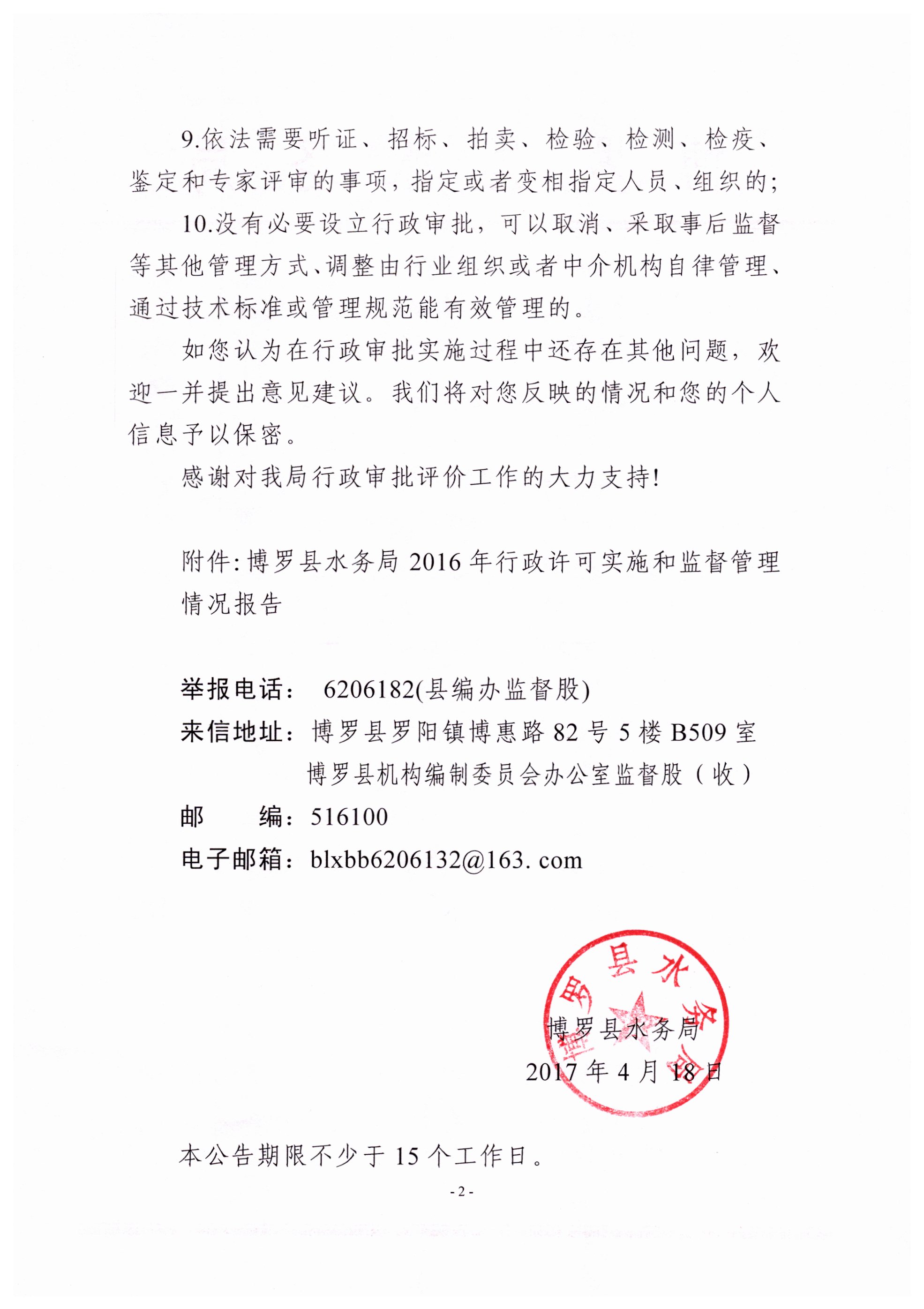 中文博彩平台水务局2016年行政许可实施和监督管理情况评价公告