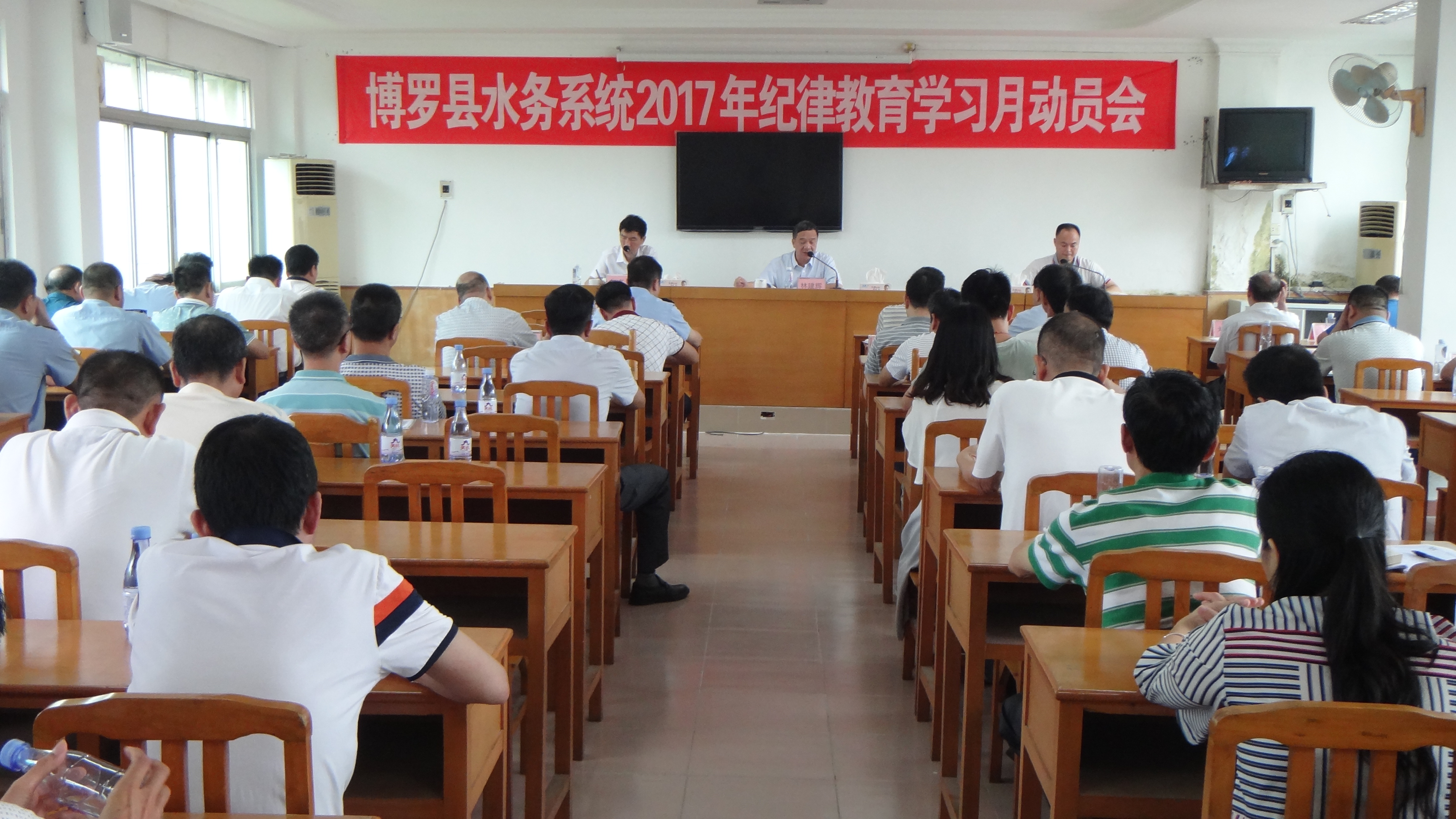 9月14日,中文博彩平台水务系统召开2017年纪律教育学习月动员会暨学习贯彻《中国共产党巡视工作条例》专题会议,会议由水务系统党委书记、局长林建辉同志主持,局机关干部职工及水管单位负责人共80余人参加会议。