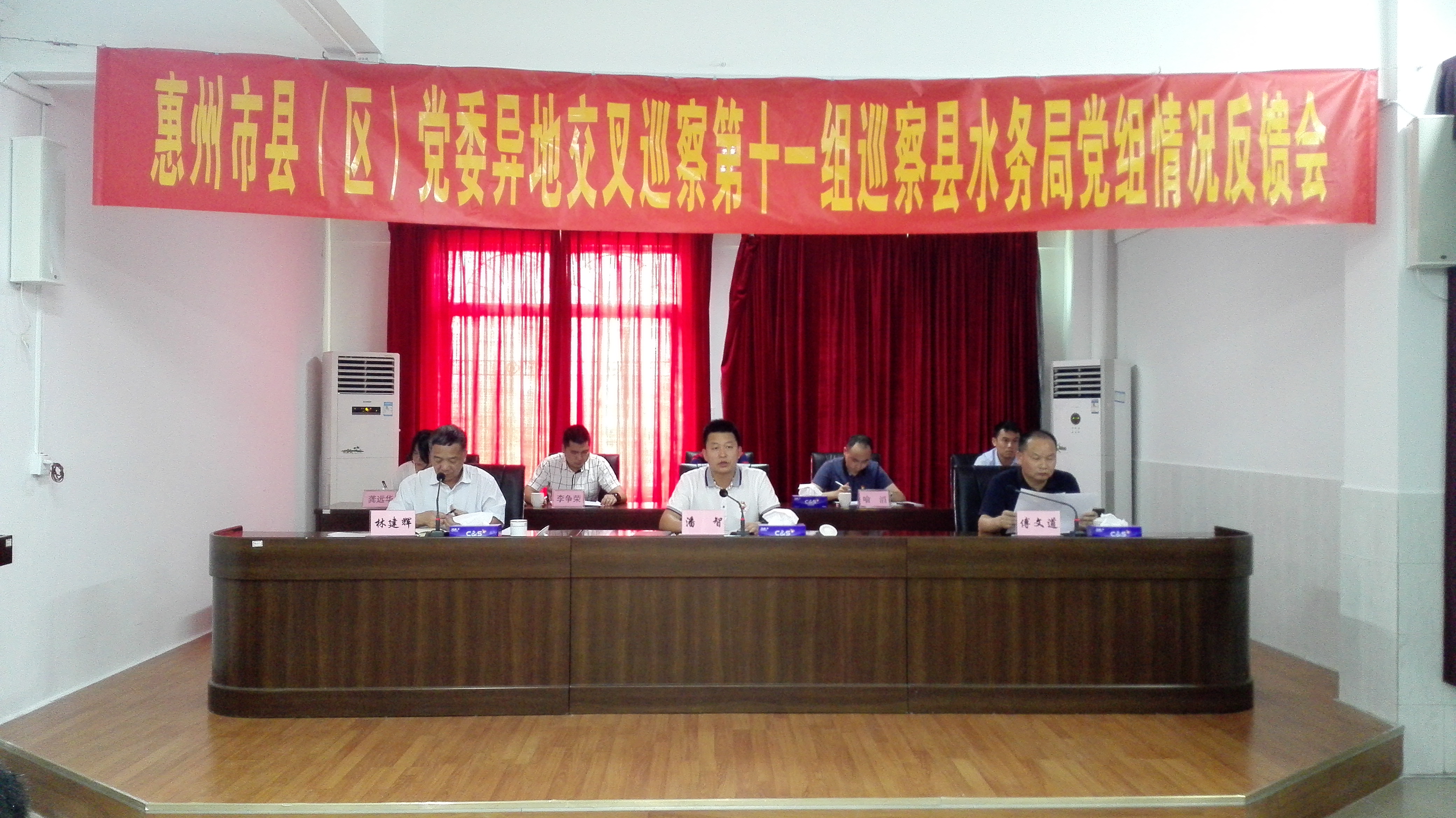 5月31日下午,惠州市县(区)党委异地交叉巡察第十一组巡察县水务局党组情况反馈会在县水务局七楼会议室召开,局党组书记、局长林建辉主持会议。县委常委、县委组织部部长、县委巡察工作领导小组副组长潘智,县巡察办副主任喻滔,惠州市县(区)党委异地交叉巡察第十一组组长傅文道,副组长肖利华,察组成员李争荣、何碧桥、龚远华,县纪委派驻党群系统纪检组组长蔡焕炬出席了会议。县水务局机关全体干部职工,县管水利工程单位正副职领导,各镇(街道)水利所负责人共100多人参加了会议。