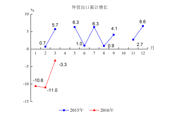 11.外贸出口总额(1-3月)30.36亿元,下降3.3%。